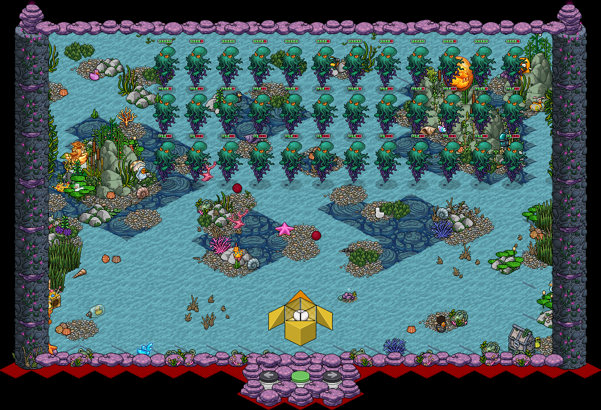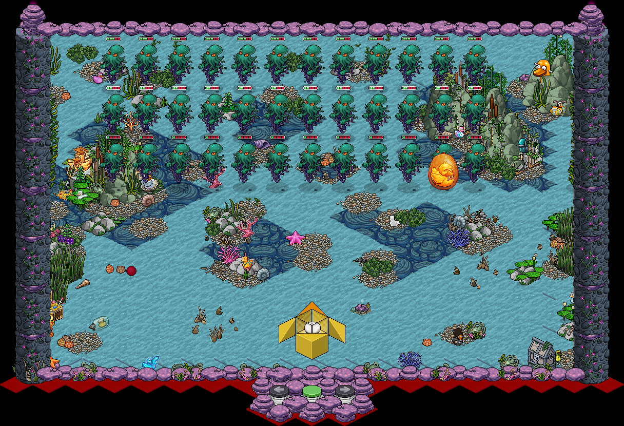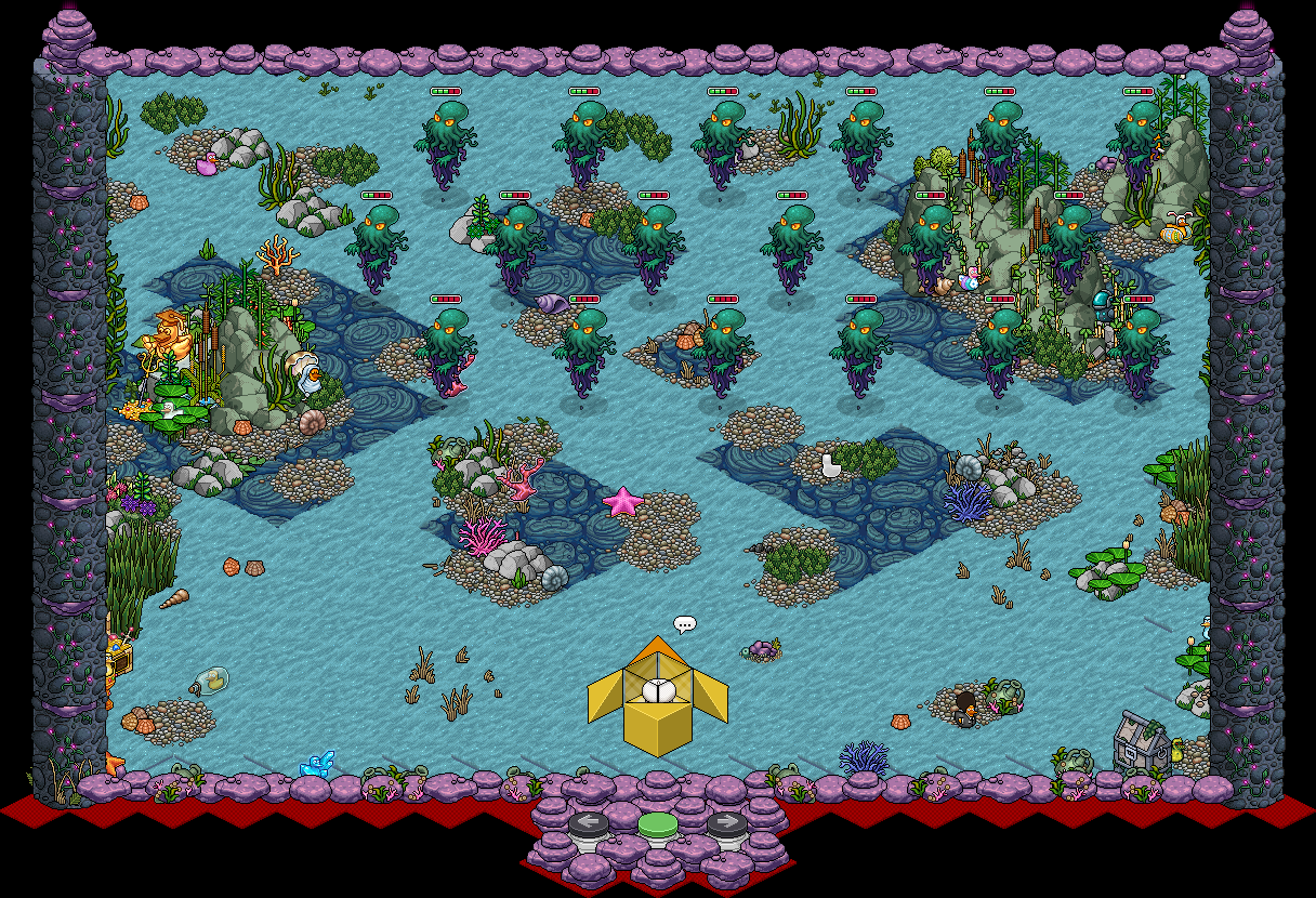 Niveles 1-6: Tu misión será disparar a las criaturas de las profundidades marinas para eliminarlas todas antes de que te alcancen. Para ello, deberás mover tu submarino en la dirección que desees usando los botones flechas para ubicarlo frente a ellas y dispararles usando el botón verde. También deberás esquivar sus ataques ya que solo tienes 3 vidas al iniciar.Además, existen tres potenciadores que podrás capturar: