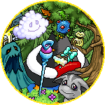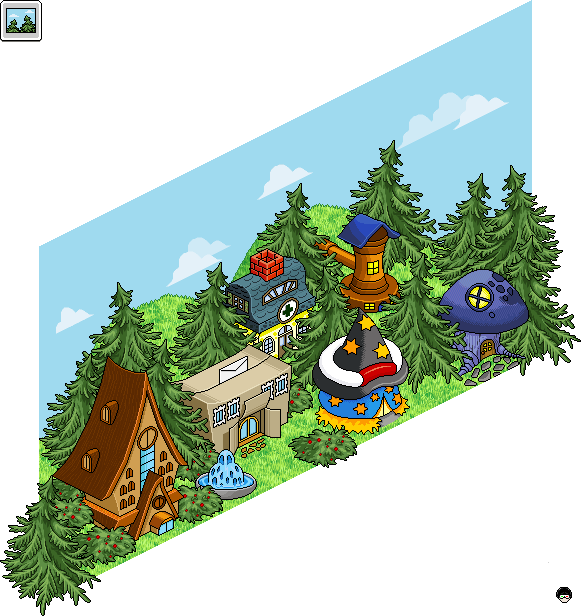 Habbelina vive en un frondoso bosque con mágica energía. ¡Rejuvenece tus píxeles bañándote en el río! Viene con una rana de mascota y una EXCLUSIVA placa. Sala obra de Frission (.COM).