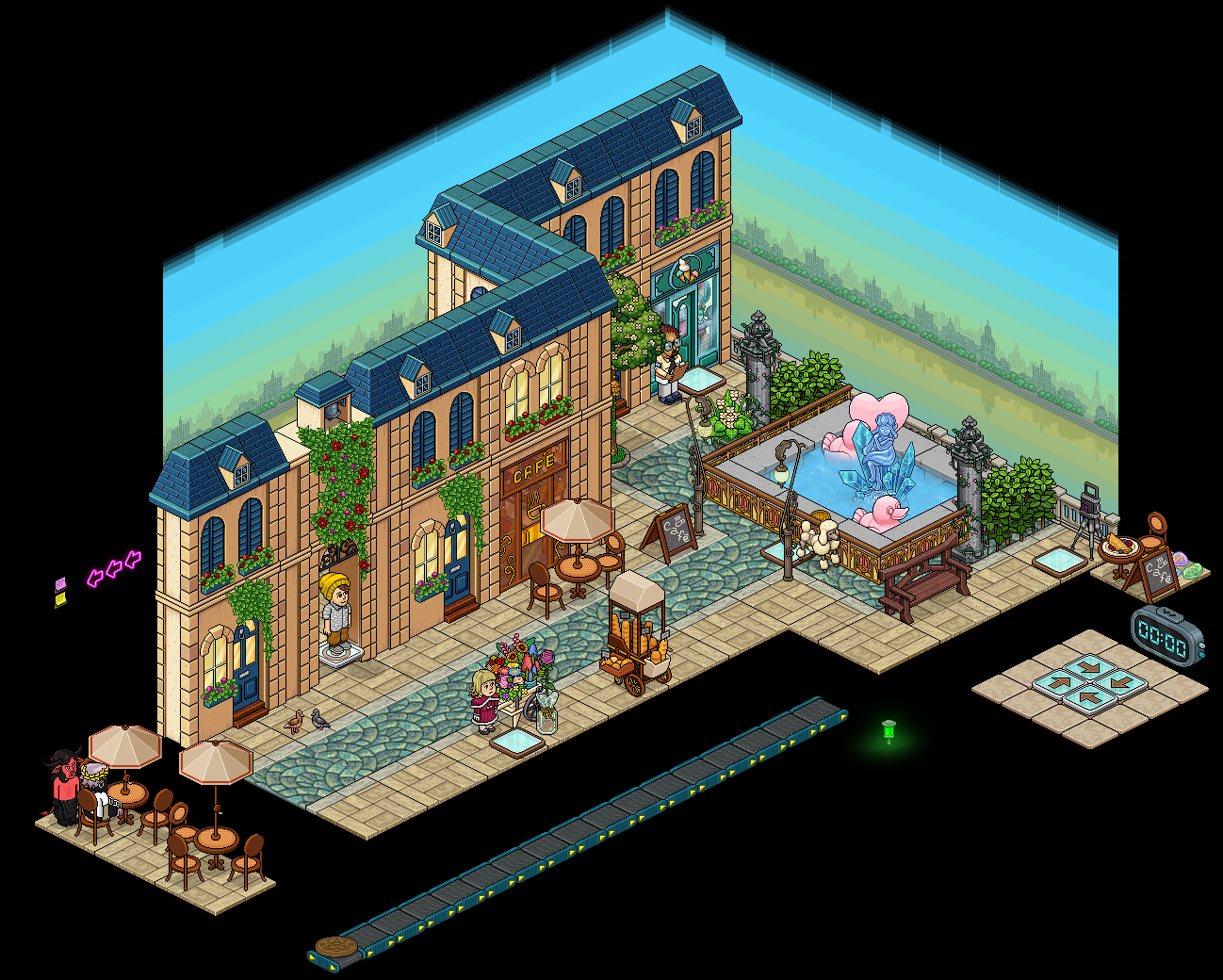 Tendrás que pisar la casilla timbre, que se moverá de forma aleatoria por la zona de juego. Después, una casilla color se pondrán de color verde y tendrás que pisarla y decir "*hablar*"; finalmente tendrás que ir a la última, que se trata del Maniquí Habbolimpico de la esquina superior (O también MejorAmigo), a quién tendrás que decirle "*Preguntar*". Una vez hayas realizado esto, tendrás que regresar a la casilla timbre sin que los maniquíes te atrapen.