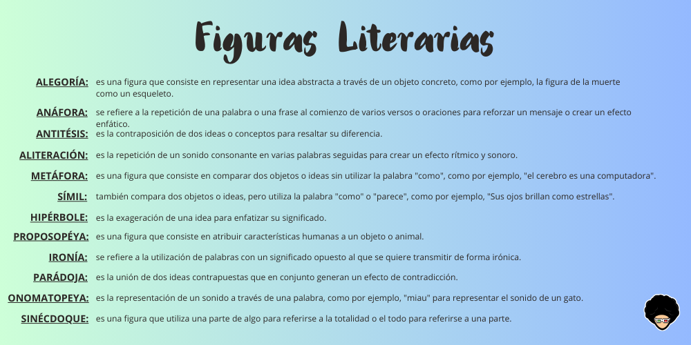 ¡Hola afroamigos! Cada vez quedan menos días para saber los resultados de su arduo trabajo como expertos en canciones infantiles, en palabras tímidas y, como en esta ocasión, en su conocimiento para las figuras literarias. Esperamos que hayas puesto atención a las clases de arte, ya que vas a necesitar esos conocimientos (o bueno, igual es fácil convertirse en todo un detective con toda la tecnología que tenemos) debido a que nuestro amigo de cabello al estilo afro, se ha querido proponer a convertirse en una leyenda de la escritura y quiere escribir material mucho más creativo que el de todo mundo. Es por ello, que te traemos este reto llamado