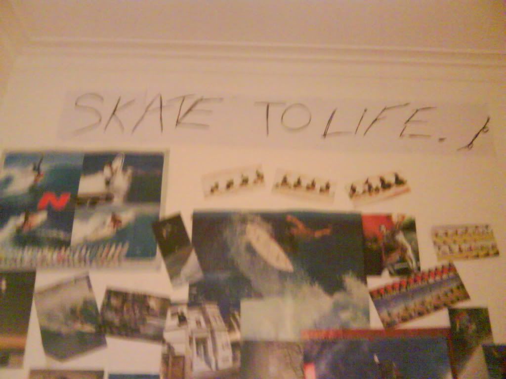 Me acuerdo hace 3 años hice un grafiti así mini en la pared y lo que más me mola de mi habitación es el skate roto de y el texto ''skate to live'' a unque me costó que me dejarán xd y imaginaros todo el bluetack(aquella cosa azul que es manejable y se engancha) que he usado :wikii: xddd