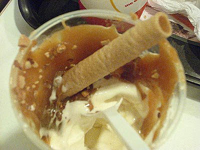 Bueno, ahora que estoy en el curso de inglés, todos los viernes con mis compañeros bajamos 2 cuadras al Mc'donalds y la mayoria se compran un Mcflurry con galleta, pero yo me compro un Top Sundae ese que trae salsa de chocolate-menta, mani picado, y un par de galletas de tubo.