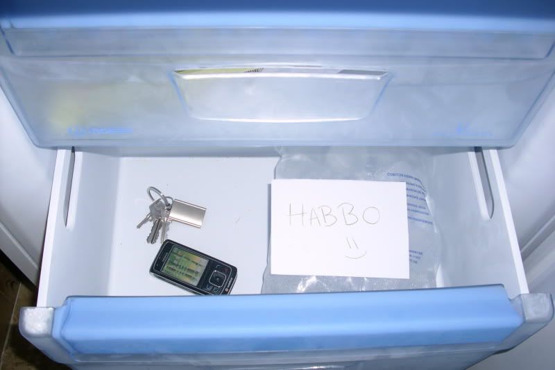 pues XD son unas llaves y un movil en el congelador XDD