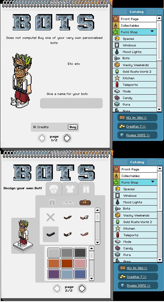 HabboS anuncio hace tiempo unas imagenes del catalogo de los Bots.