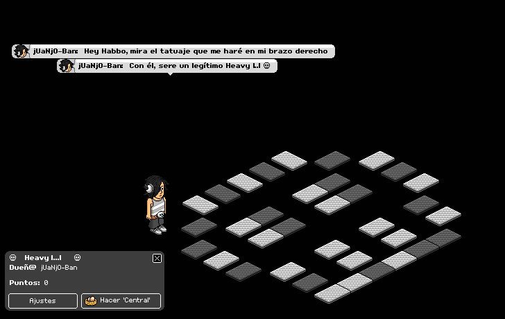 Sí, esta vez te vamos a pedir que diseñes tu propio tatuaje heavy, pero empleando en su diseño Furni que tengas disponible en una de tus Salas Privadas. Igual te da por un rosetón (quién dice que los heavies no son sensibles) o por cualquier otra figura producto de tu imaginación. Basta con que el diseño sea inconfundiblemente heavy... pero que respete igualmente la Manera Habbo.