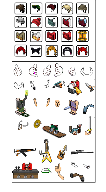 3 º paso : Si elejistes una remera ponla arriba de la que tiene tu habbo , si elejistes una mano con una guitarra , borra la mano de tu Habbo y ponle esa imagen , asi hasta que termines .