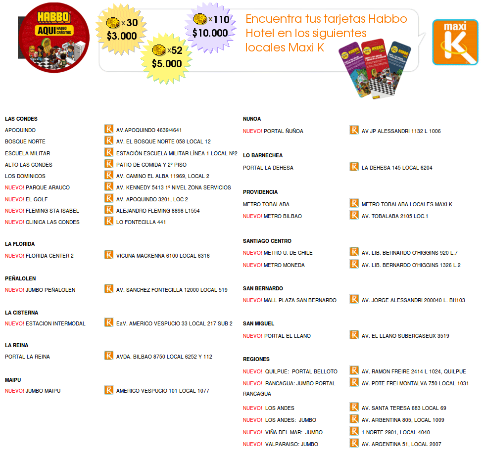 Nota: Aquí están las direcciones en donde se encuentran los Maxi K que venden las tarjetas (tambien hay en regiones ;D)