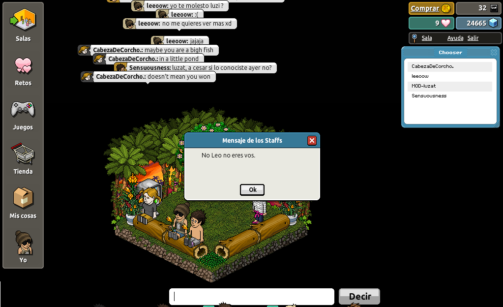 :mmm: parece que tiene faltas de ortografía pero la sala si existe, a mi solo me han salido dos tipo de respuestas esa de ojos que no ven corazón que no siente y que contacte por ayuda y soporte en "Contáctanos"-