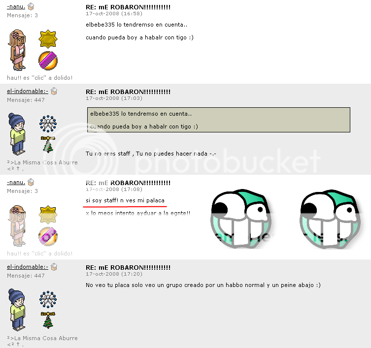 Hay algunos que si se toman en serio eso de ser "staffs" no?? jajaj como el de "no me sale la opcion de banear" :roto2: