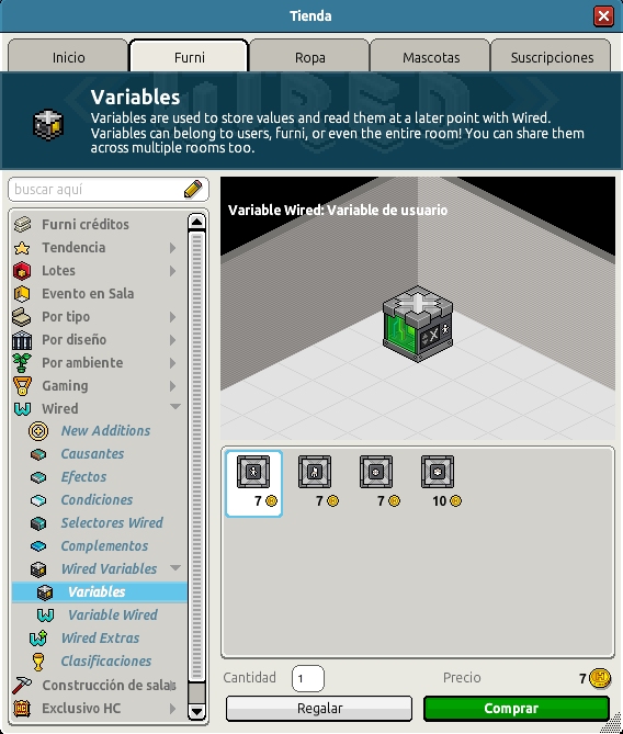 Furni » Gaming en sus respectivos apartados en el catálogo de Habbo y el almacén del Club del Arquitecto. Sus precios varían desde