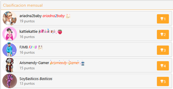 monedas web, puntos en la clasificación mensual y créditos en Habbo. Las personas que quedaron dentro del TOP,