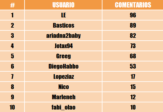 comentarios de la comunidad dando sus opiniones y como apreciación, los usuarios con mayor número de comentarios son premiados gracias a la actividad donde se elige al