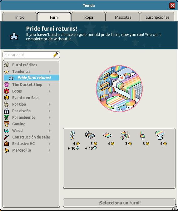 Furnis Orgullo. Para adquirir sus furnis, tendrás que ingresar al apartado