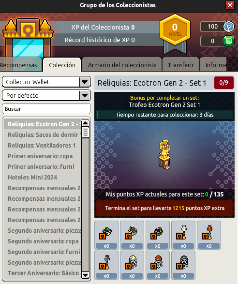 tres furnis coleccionables. A partir de hoy, si lograste completar los sets, ya puedes reclamar sus bonus.