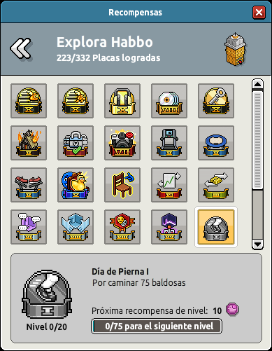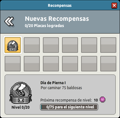 por caminar cierta cantidad de baldosas. Cada nivel de las recompensas está definido por una cantidad específica como te mostramos más adelante.