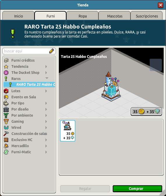 RARO Tarta 25 Habbo Cumpleaños, ya se encuentra disponible en el catálogo de Habbo por