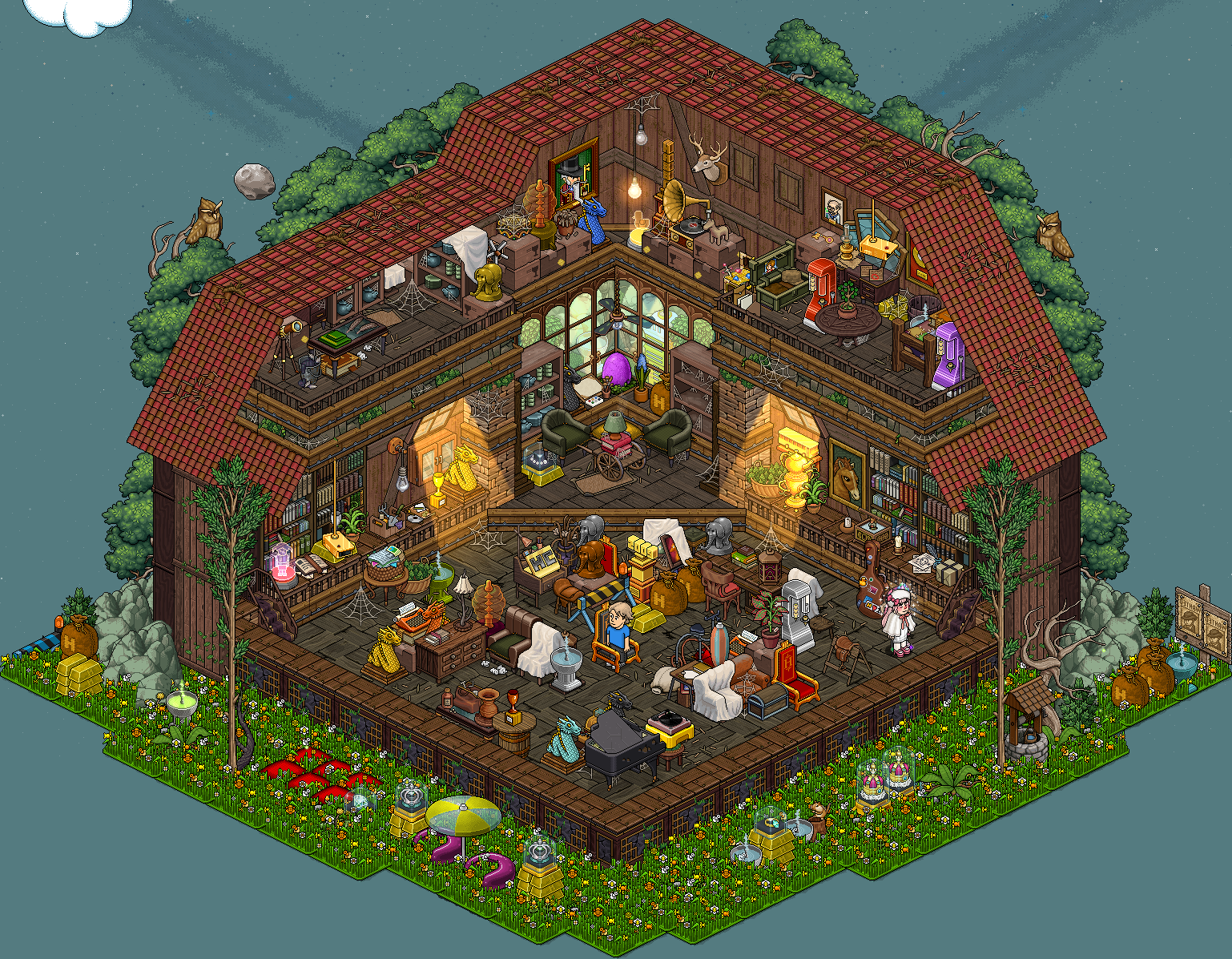 siete pasos de este reto lo puedes completar en otras salas. Puedes encontrar los furnis necesarios, a excepción del primero, en la sala de