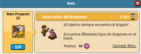 Trono Dragón" hasta completar el reto.