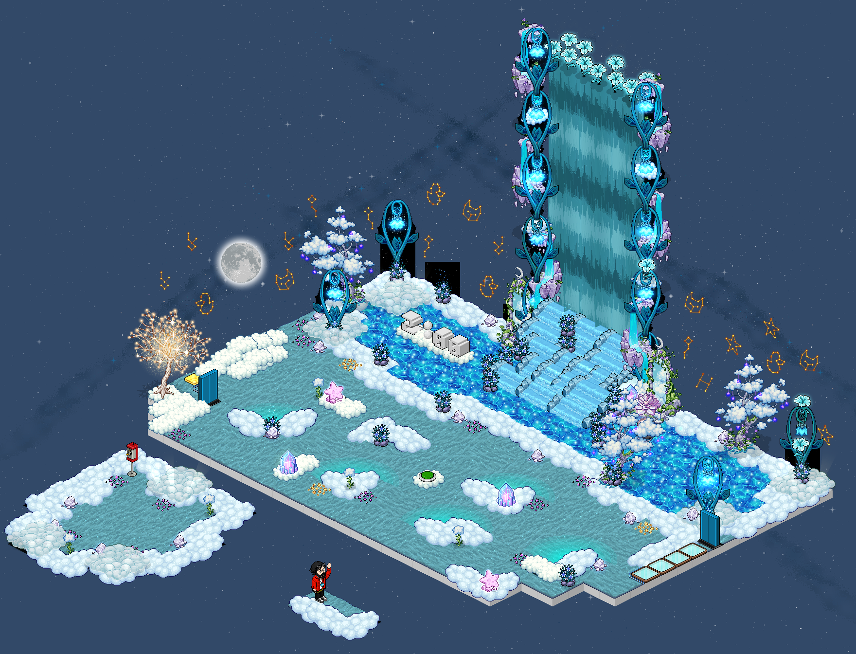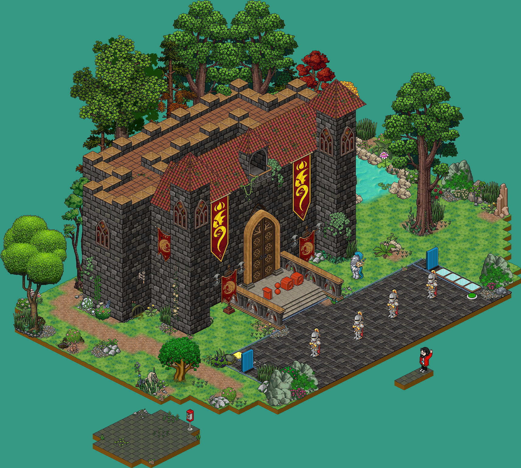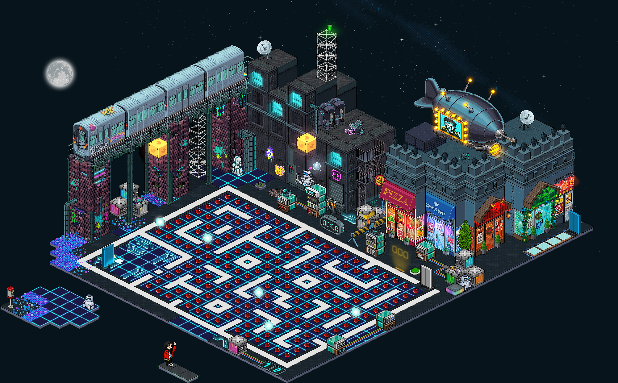 Placa secreta:En este nivel podrás encontrar dos placas ocultas dado clic a los dos bots, cada uno te dará una placa. Para que esto funcione tendrán que haber dos usuarios sentados en el banco.