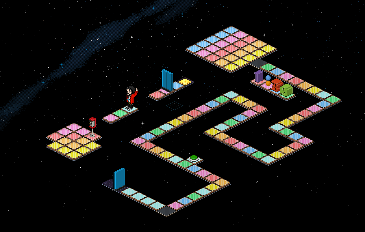 Al superar un nivel habrán 4 casillas blancas, al situarse un usuario diferente en cada una, se abrirá una puerta para ir al siguiente nivel.Al completar los 9 niveles del laberinto, por primera vez, obtendrás la siguiente placa, y un premio.
