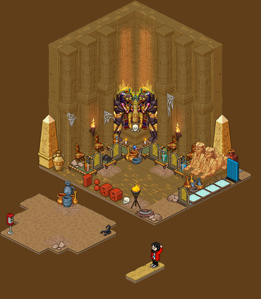 Tienes 1 minuto para superar este nivel. Cuatro usuarios deberán sentarse en las cuatro Sillas Africanas y escapar antes de que la trampa se active y las puertas se cierren. Cuando esto ocurra, se abrirán las puertas para avanzar al siguiente nivel. Si no lo logras, quedarás atrapado.