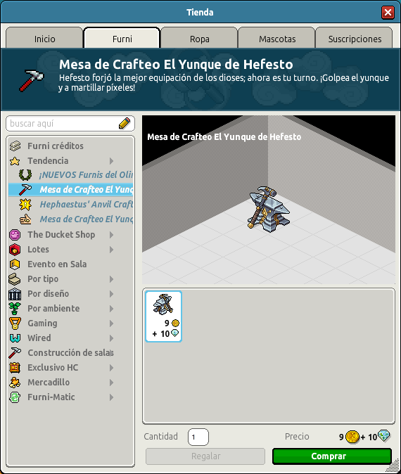 Furni » Tendencia » Mesa de Crafteo El Yunque de Hefesto, con ella podrás crear la nueva ropa de la campaña del