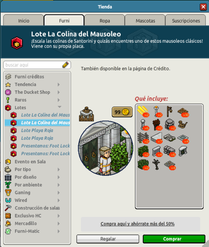 catálogo de Habbo por un precio de