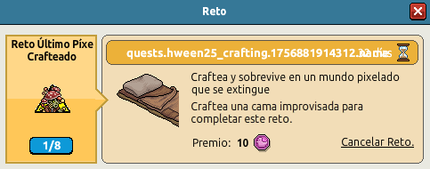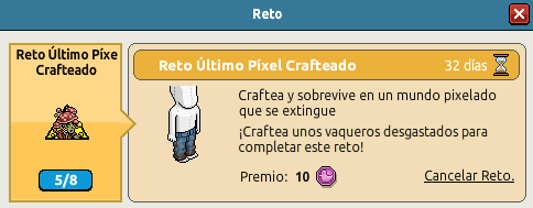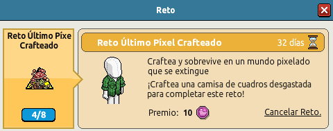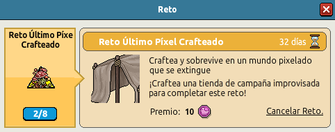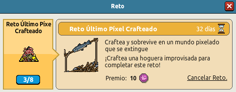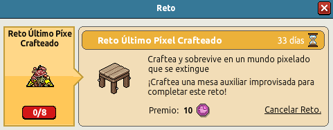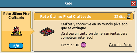 El reto de crafteo se llama "Reto Último Píxel Crafteado" y, para completarlo, deberás seguir nuestros pasos. Recuerda tener activado el reto antes de completarlo.
