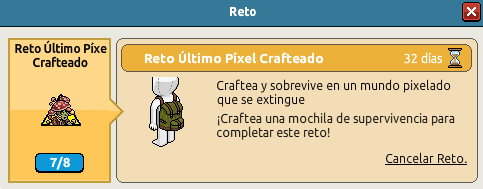 8. Reto Último Píxel Crafteado Craftea y sobrevive en un mundo pixelado que se extingue¡Craftea una Mochila de supervivencia para completar este reto!