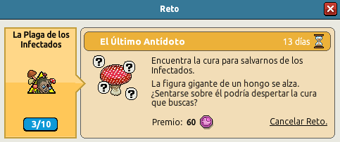 En Habtium, preparamos una sala con los furnis necesarios e información para completar los retos disponibles. Para acceder, deberás buscar la sala "[HTM] Retos Hongos › Tareas Diarias › Recompensas" (:roomid 113211070) de Habtium. ¡Sigue las indicaciones!
