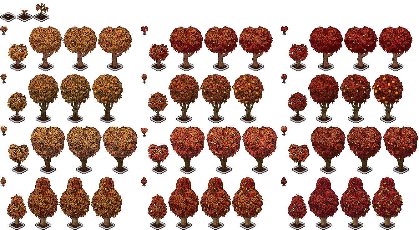 Manzano, Peral, Melocotonero y Naranjo. A continuación te dejamos una imagen donde te las mostramos todas con sus diferentes estados hasta la maduración.