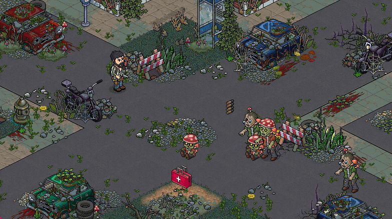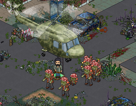 juegos oficiales de Habboween para ganar sus placas y premios. El día de hoy se ha desatado un brote en el Hotel,