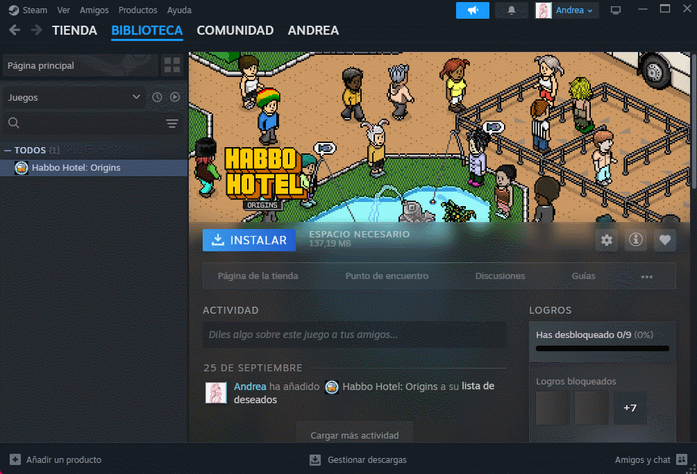Habbo Hotel: Origins en Steam e instala el juego desde allí.