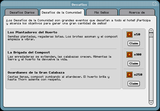 Los Plantadores del Huerto, La Brigada del Compost y Guardianes de la Gran Calabaza, los cuales se podrán completar