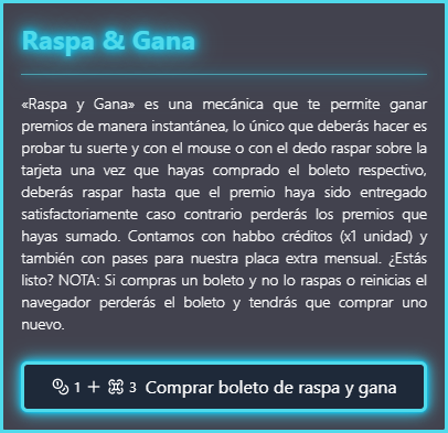 31 días de HC en Habbo. Los boletos tienen un costo de