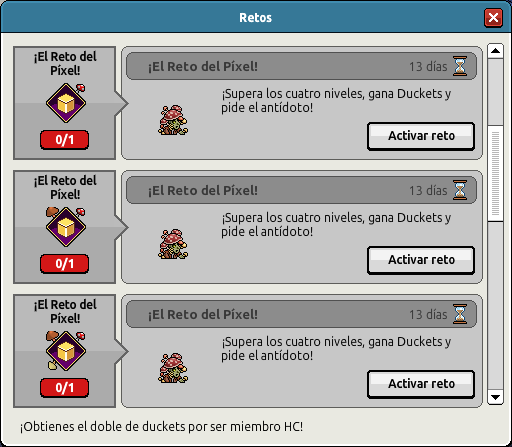 cuatro retos del Píxel disponibles obtendrás Duckets y una