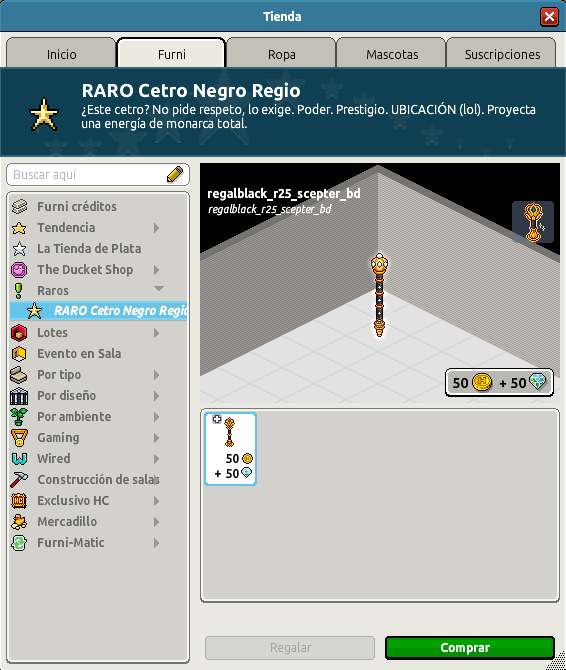 RARO Cetro Negro Regio, tercero de la colección Negro Regio, ya se encuentra disponible en el catálogo de Habbo por