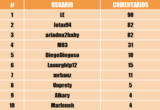 comentarios de la comunidad dando sus opiniones y como apreciación, los usuarios con mayor número de comentarios son premiados gracias a la actividad donde se elige al