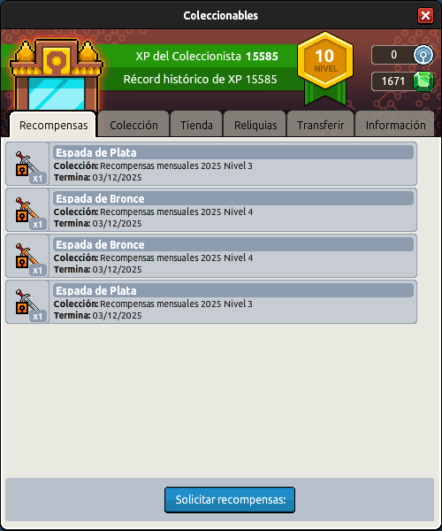 Nivel de Coleccionista es 5 o superior, podrás reclamar las recompensas correspondientes a los niveles. Hay