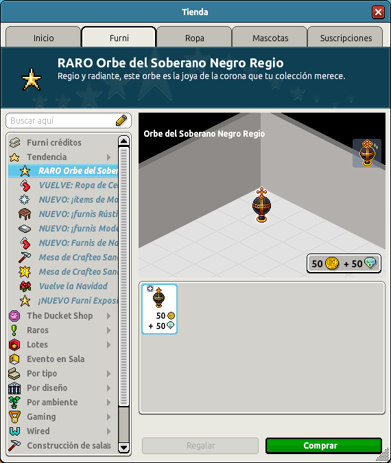 RARO Orbe del Soberano Negro Regio, cuarto de la colección Negro Regio, ya se encuentra disponible en el catálogo de Habbo por