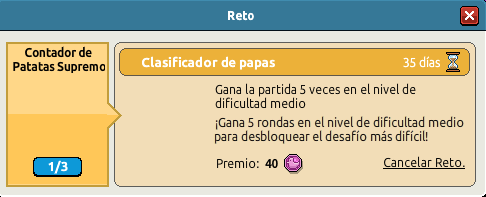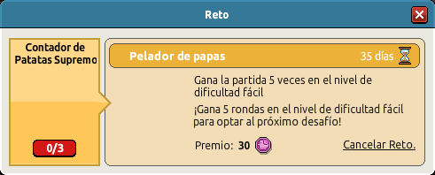 1. Pelador de papas Gana la partida 5 veces en el nivel de dificultad fácil