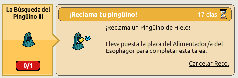 1. ¡Reclama tu pingüino! ¡Reclama un Pingüino de Hielo!Lleva puesta la placa del Alimentador/a del Esophagor para completar esta tarea. Ponte en tu perfil la placa "Alimentador/a del Esophagor" ganada en el Juego 2: Desafío Esophagor de Navidad para completar el reto.