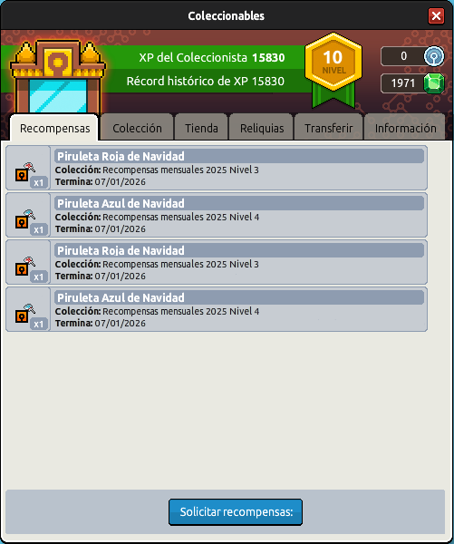 Nivel de Coleccionista es 5 o superior, podrás reclamar las recompensas correspondientes a los niveles. Hay