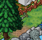 1. Encuentra el furni "Regadera" situándote a su lado y haciendo clic en él. Este tiene 3 ubicaciones diferentes cerca del guardián.