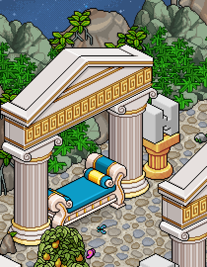 1. Encuentra el furni "Harpa ateniense de lujo" situándote a su lado y haciendo clic en él. Este tiene 3 ubicaciones diferentes.