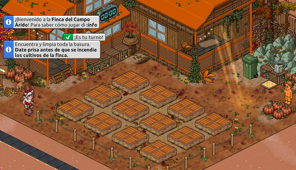 Para superar este juego, tendrás que limpiar 10 residuos. Para ello, deberás situarte al lado de los furnis "Residuos órganicos", "Basura Fermentando" o "Bolsas de basura a rebosar" y ser el primero en hacerles clic. Estos furnis aparecerán cada cierto tiempo y solo el usuario más rápido en hacer clic sumará un residuo limpiado. Cuantos más usuarios hayan en la sala, más rápido aparecerán estos furnis. Una vez hayas limpiado los 10 residuos, ganarás la placa: Semillín.