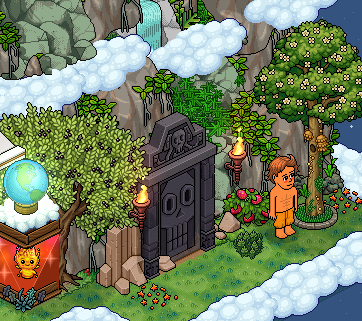 1. Encuentra el furni "Regadera" situándote a su lado y haciendo clic en él. Este tiene 3 ubicaciones diferentes cerca del guardián.