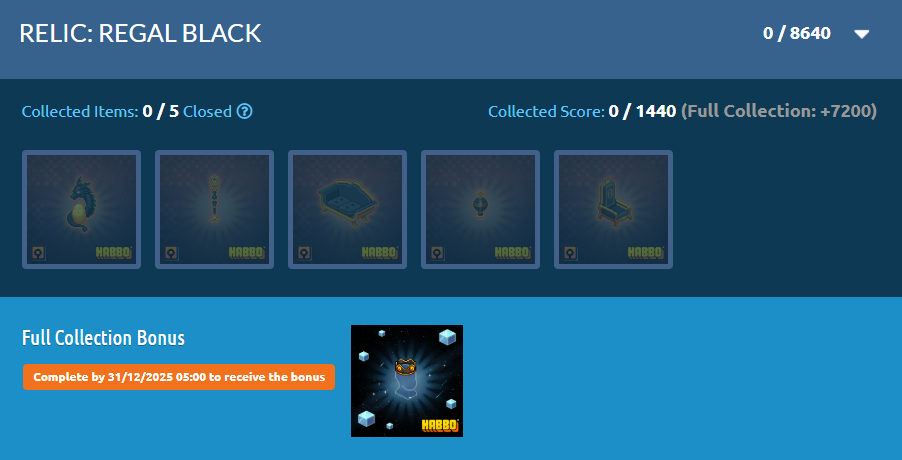 Set Reliquia: Negro Regio. Tras completar la colección, por fin podrás reclamar la