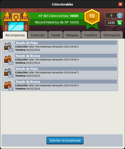 Nivel de Coleccionista es 5 o superior, podrás reclamar las recompensas correspondientes a los niveles desde hoy hasta el
