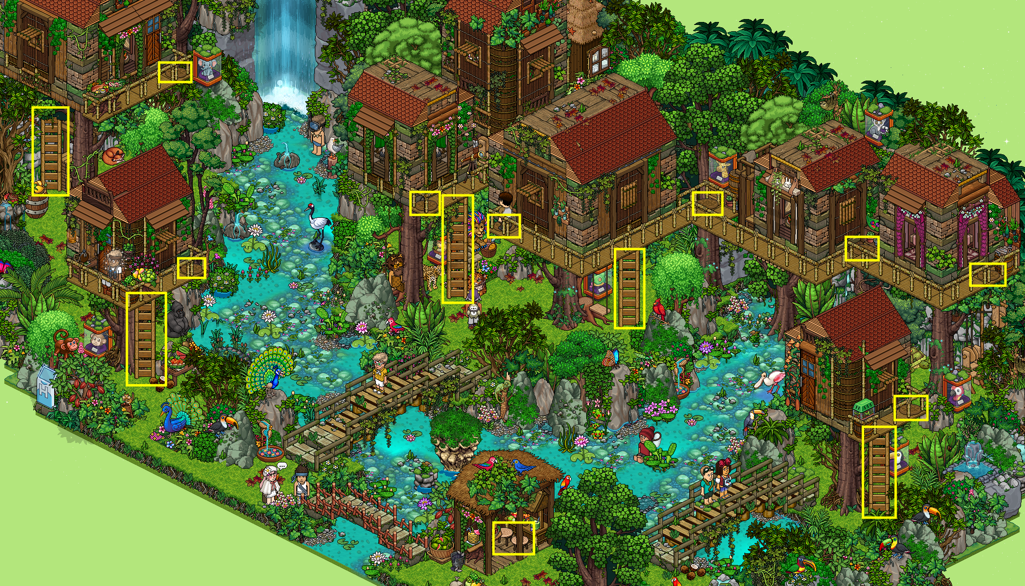 cabañas en los árboles para cada placa con su respectivo